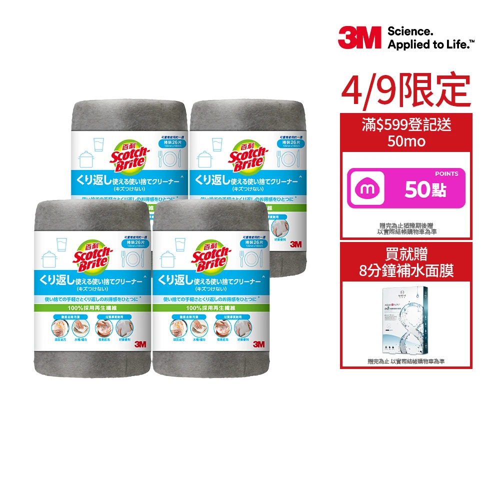 momo獨家首賣3M百利拋棄式細緻捲裝清潔布,菜瓜布-26片,4捲